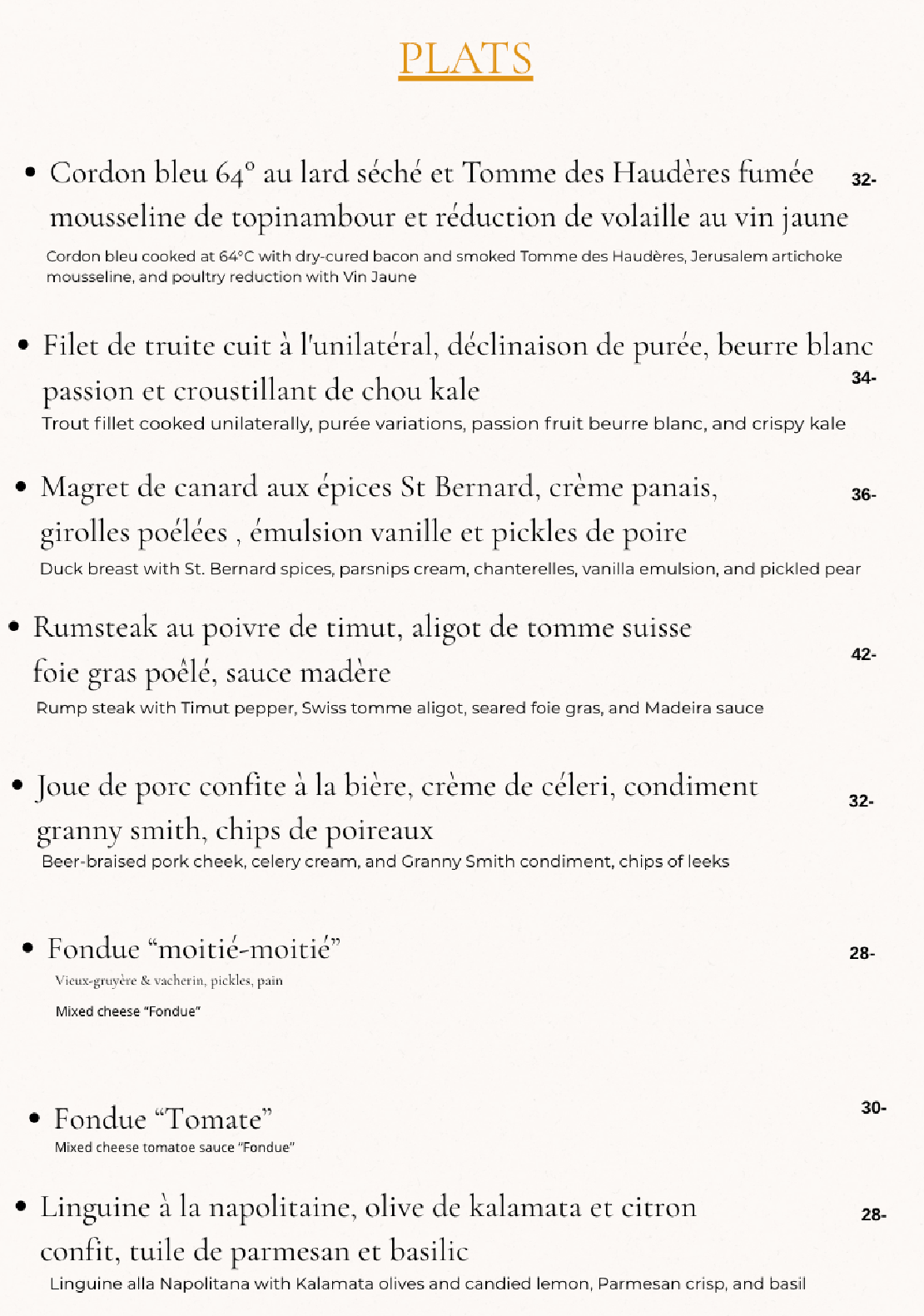 This menu is given as an indication. The menu evolves according to the arrivals and creations of our chef.