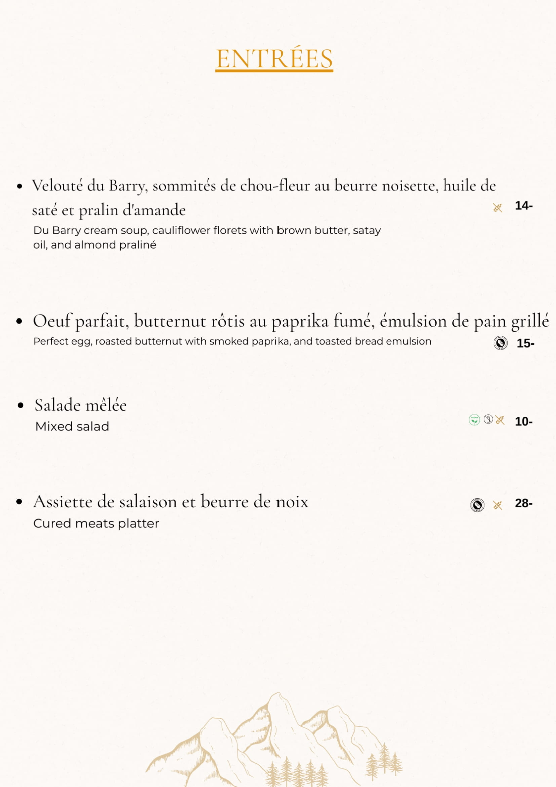 Prix entrée / prix plat