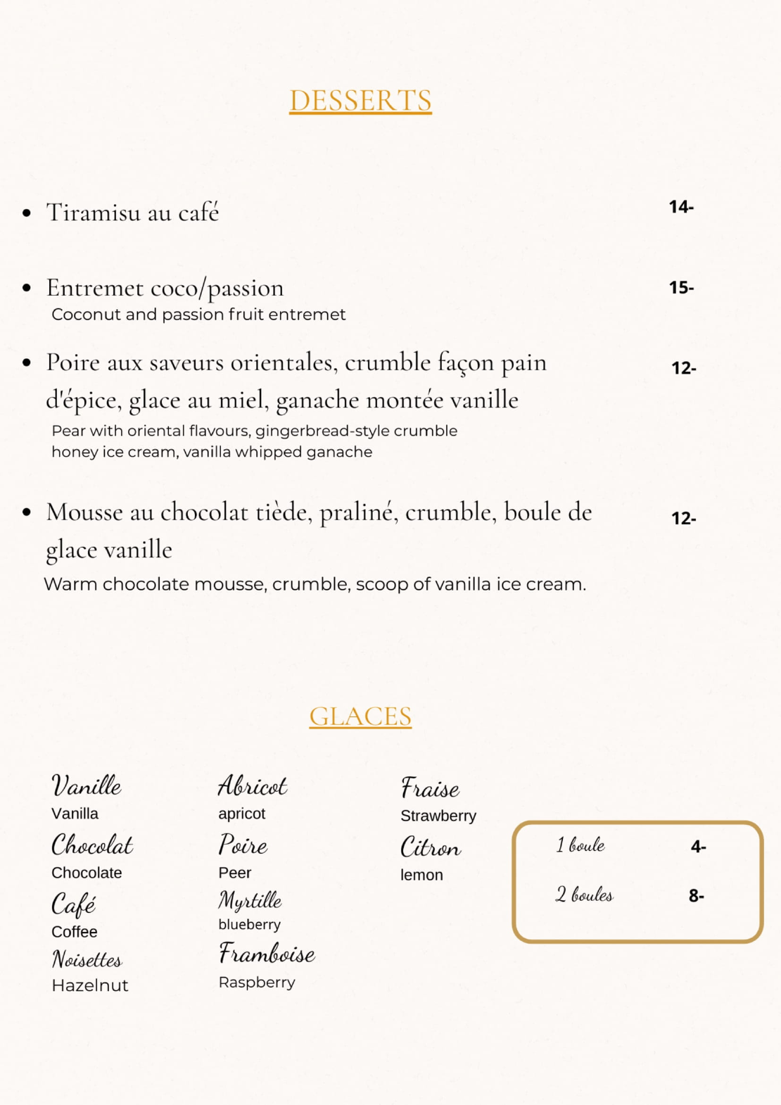 Ce menu est donné à titre indicatif. La carte évolue en fonction des arrivages et des créations de notre chef.